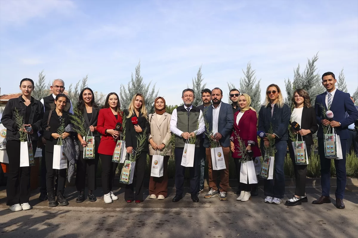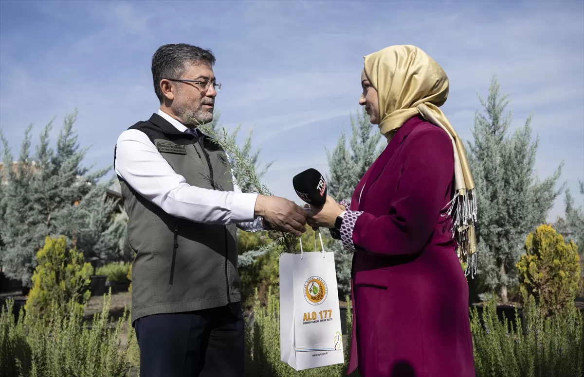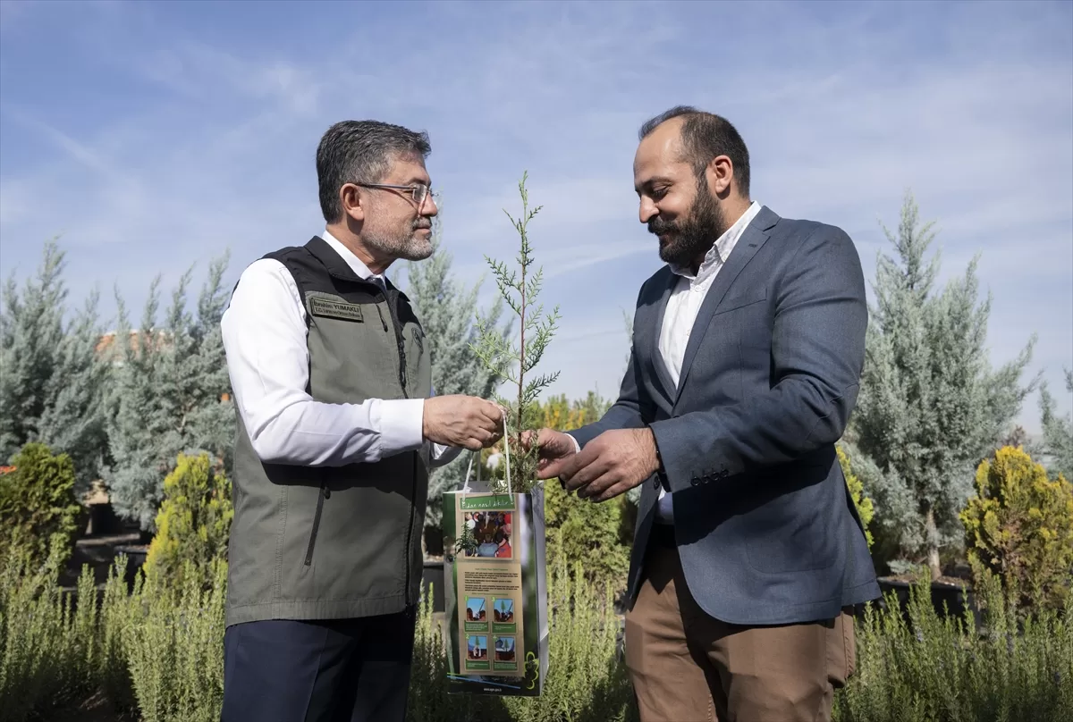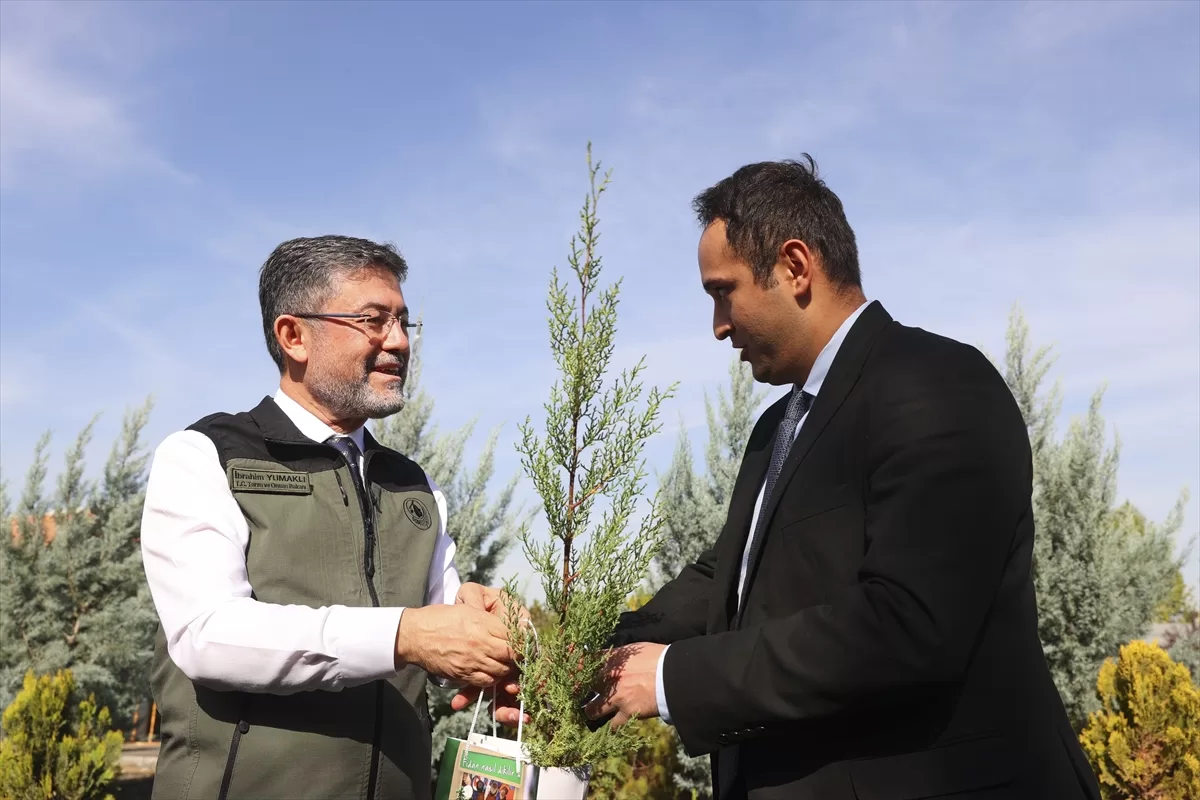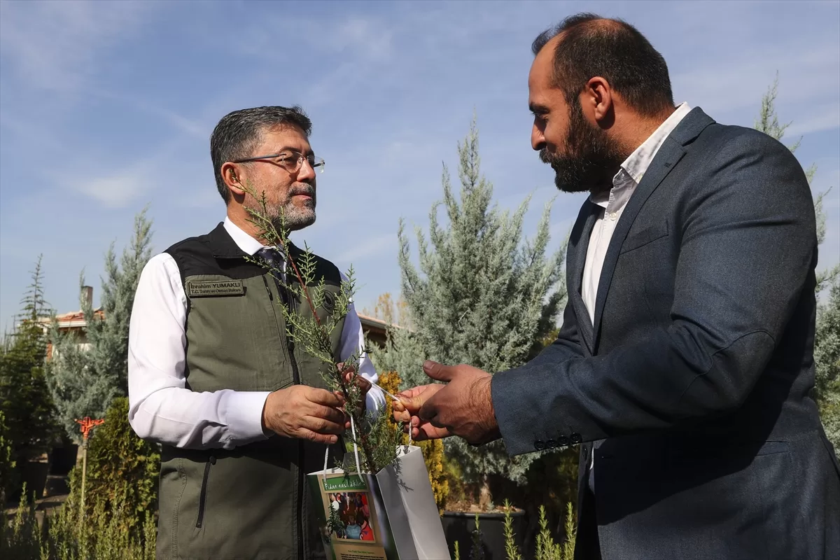 Bakan Yumaklı, basın mensuplarına fidan hediye etti.