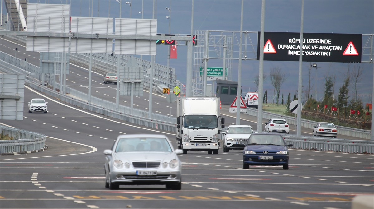 Asya ve Avrupa yakalarından, özellikle ağır vasıta sürücülerinin yoğun ilgi gösterdiği köprüden çok sayıda araç kısa sürede kıtalar arası geçişlerini tamamlıyor.