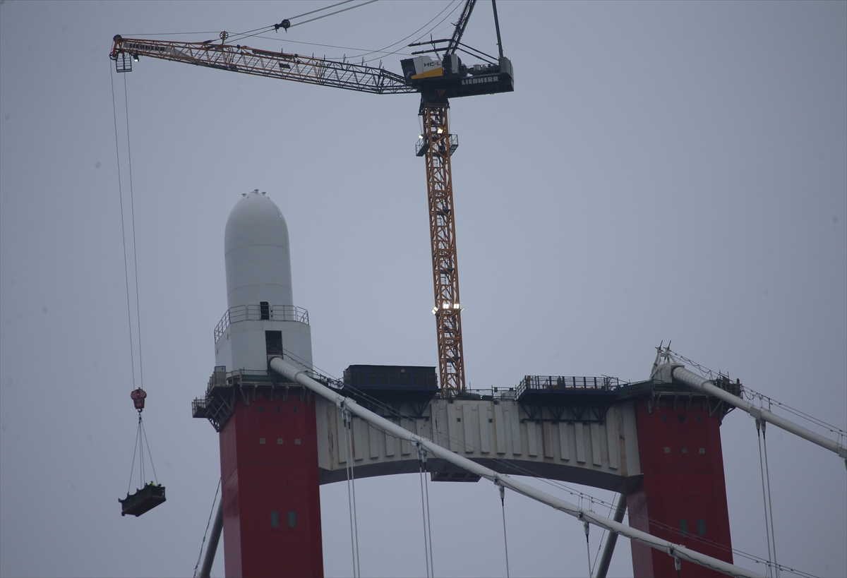 ÇANAKKALE (AA) – Çanakkale Boğazı'nda, Lapseki ve Gelibolu ilçeleri arasında inşa edilen 1915 Çanakkale Köprüsü'nün kulelerine top mermisi figürlerinin yerleştirilmesine başlandı.