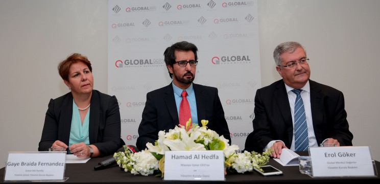 Çeyrek asrı bir çok başarı ve ilk ile geride bırakan Global Menkul Değerler’in ve bağlı kuruluşu Global MD Portföy Yönetimi Şirketi’nin öncü misyonuna uygun olarak Türk sermaye piyasası yatırımcıları için yeni, karlı yatırım ürünlerini yapılandırmak çabasının devamlılığına dikkat çeken Global Menkul Değerler Yönetim Kurulu Başkanı Erol Göker, “Bu vizyon çerçevesinde Global Menkul Değerler’in, Katar’ın önde gelen gayrimenkul şirketlerinden biri ile yaptığı bu anlaşmanın, yerel ve uluslararası bireysel ve kurumsal yatırımcılar için yeni bir soluk getireceğine inanıyorum” şeklinde konuştu. “Türkiye’de yine bir ilki gerçekleştirerek, ilk uluslararası gayrimenkul yatırım fonunu kurmak üzere yaptığımız bu anlaşmanın gurur ve mutluluğunu yaşıyoruz” diyen Göker, kurulması hedeflenen fon büyüklüğünün kısa sürede 250 milyon USD’ye ulaşabileceğini belirtti.