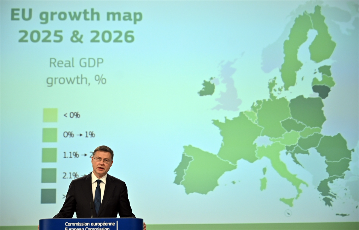 Dombrovskis, "Görünümdeki riskler aşağı yönlü olmaya devam ediyor. Bu nedenle AB içinde rekabet gücümüzü artırmak için kararlı adımlar atmalıyız." değerlendirmesinde bulundu.