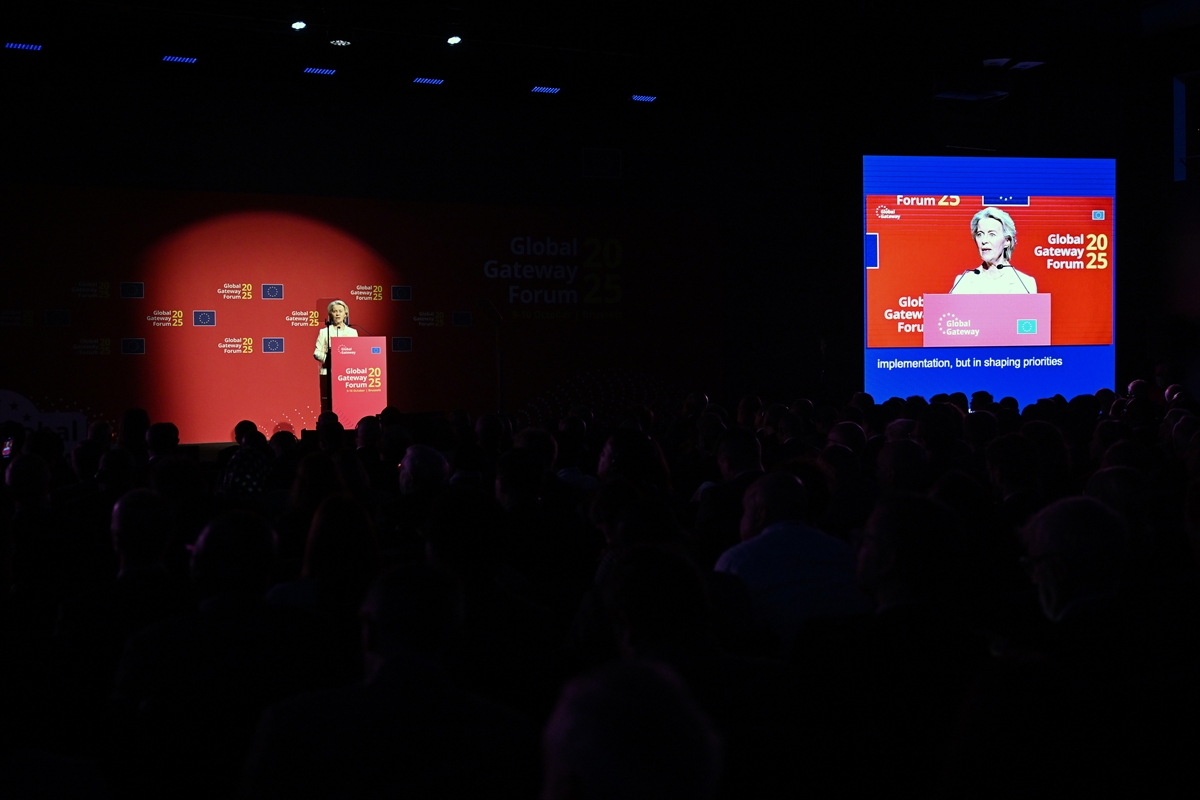 Von der Leyen, Brüksel'de düzenlenen İkinci Küresel Geçit Forumu'nun açılışında konuştu.