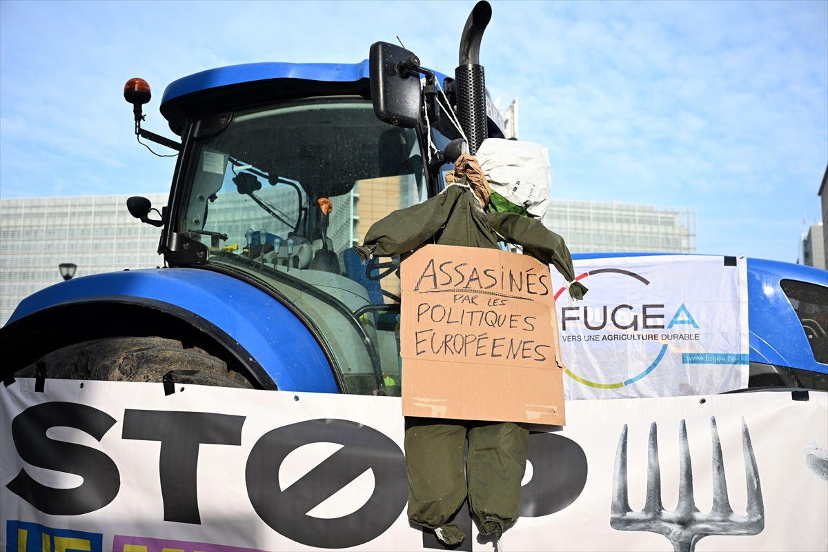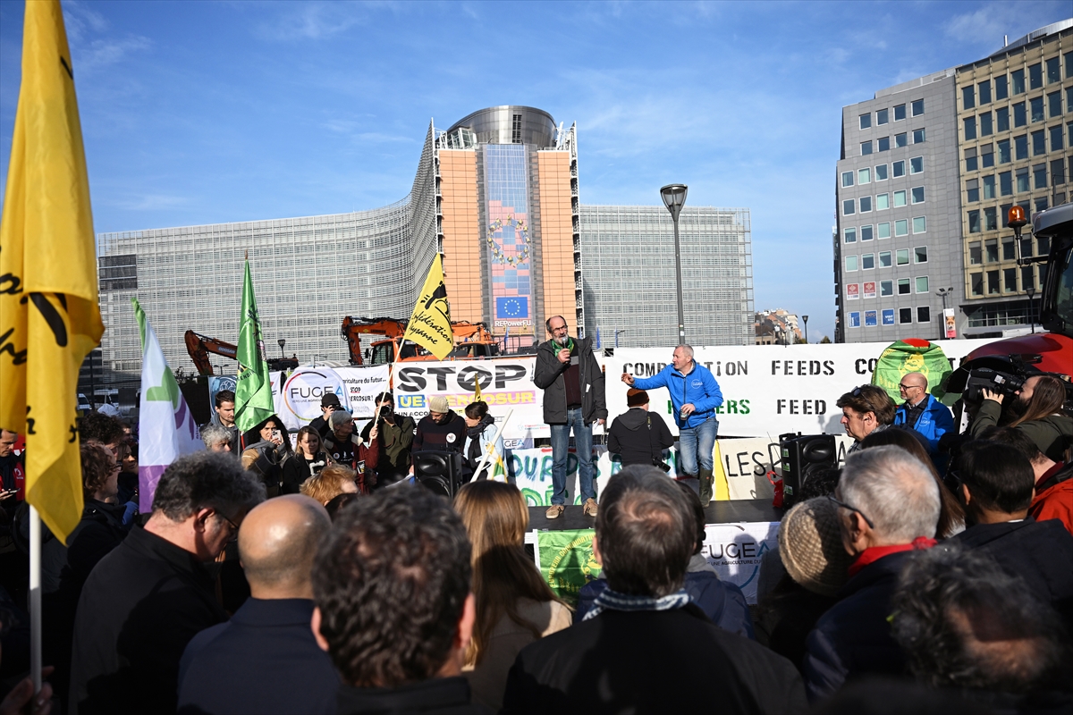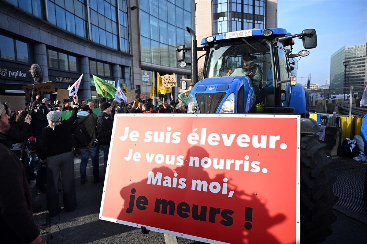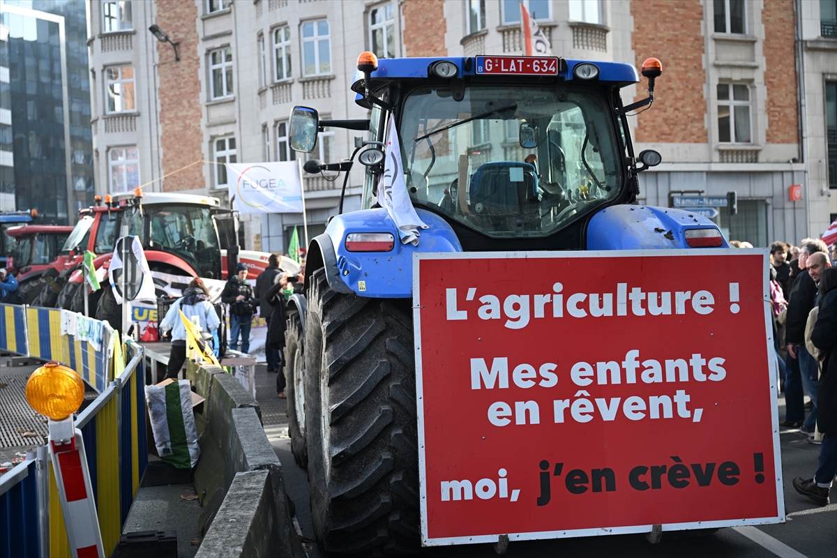 Belçika'daki çeşitli çiftçi birliklerinin çağrısıyla yaklaşık 200 çiftçi, Brüksel'deki AB Komisyonu ve AB Konseyi önündeki Schuman Meydanı'nda bir araya geldi.