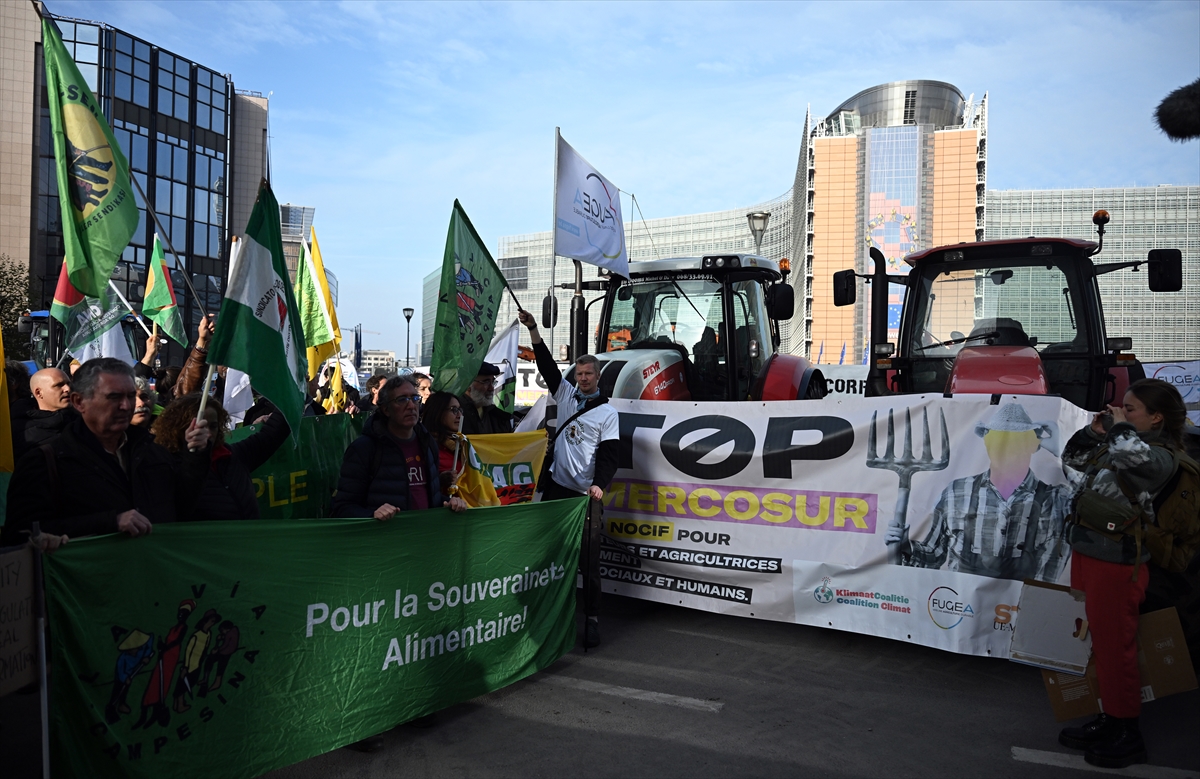 BRÜKSEL (AA) – Brüksel'de çiftçiler, Avrupa Birliği'nin (AB), Arjantin, Brezilya, Paraguay ve Uruguay'ın üyeleri olduğu MERCOSUR ile yapmayı planladığı ve et ürünlerini de kapsayan serbest ticaret anlaşmasını protesto etti.