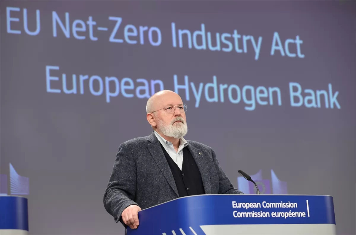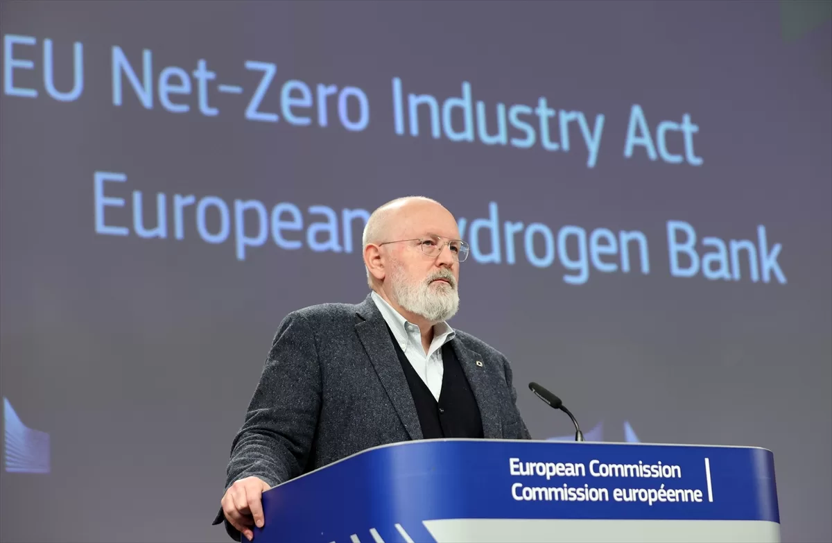 Net Sıfır Sanayi Yasası'nın, AB'de net sıfır teknoloji üretimini daha rekabetçi bir duruma getireceğine işaret eden Timmermans, yasayla AB'nin 2030'a kadar ihtiyaç duyduğu temiz teknoloji ürünlerinin en az yüzde 40'ının Avrupa'da üretileceğini vurguladı.