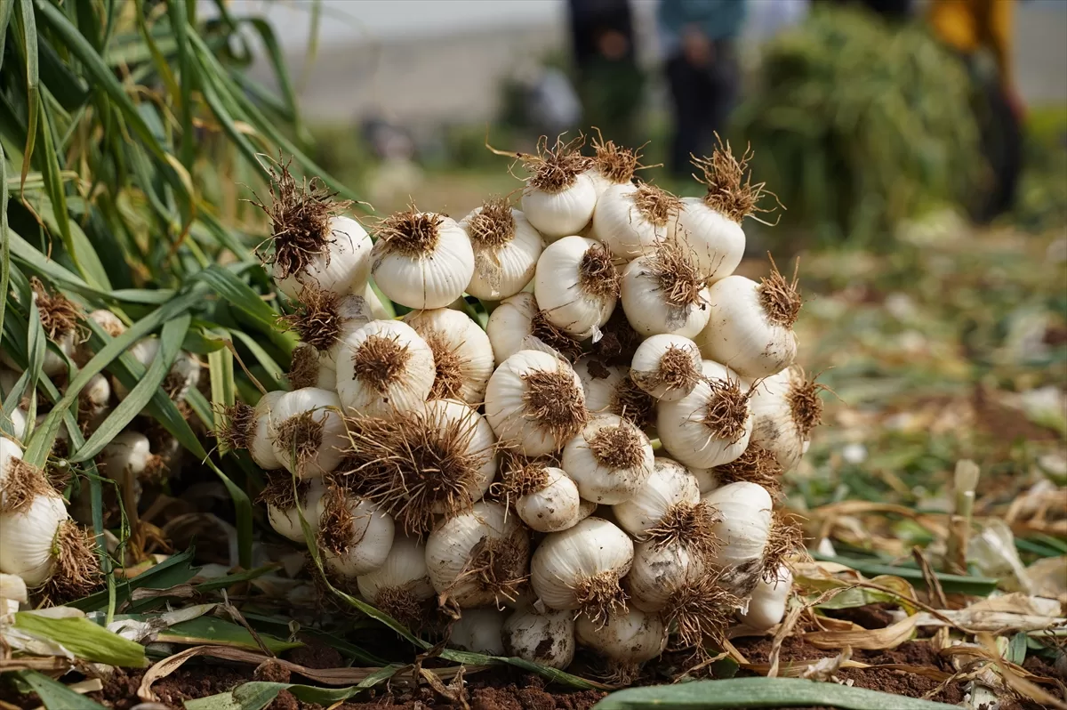 Gastronomi kentinde yemeklerin lezzetli olmasındaki en büyük etkenlerden birisi olan sarımsak, Türkiye'nin dört bir yanından talep görürken, verimin yüksek olması da üreticilerin yüzünü güldürüyor.