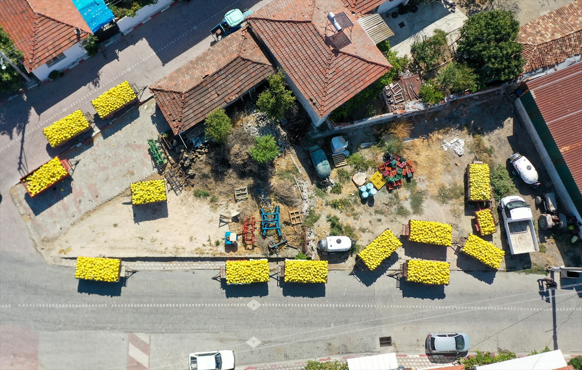 Bölgeye özgü “sarı dilim” türü kavunları hasat eden üreticiler, traktör römorklarına yükledikleri ürünleri mahalle sokaklarına park ederek satışa sunuyor.