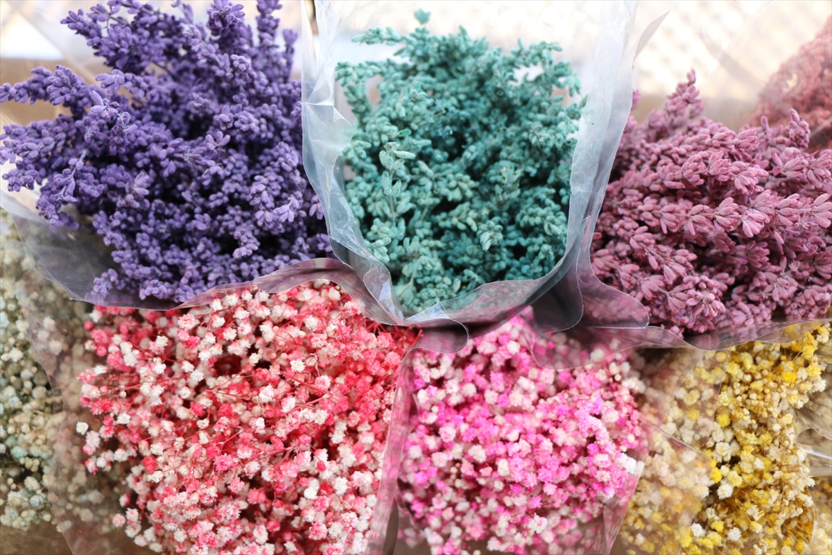 Lavanta, ortanca, deniz lavantası, buğday, yulaf, altınbaşak, mimoza bitkilerini de ürünleri arasına katan Kahveci, bitikleri renklendirerek üretime başladı.