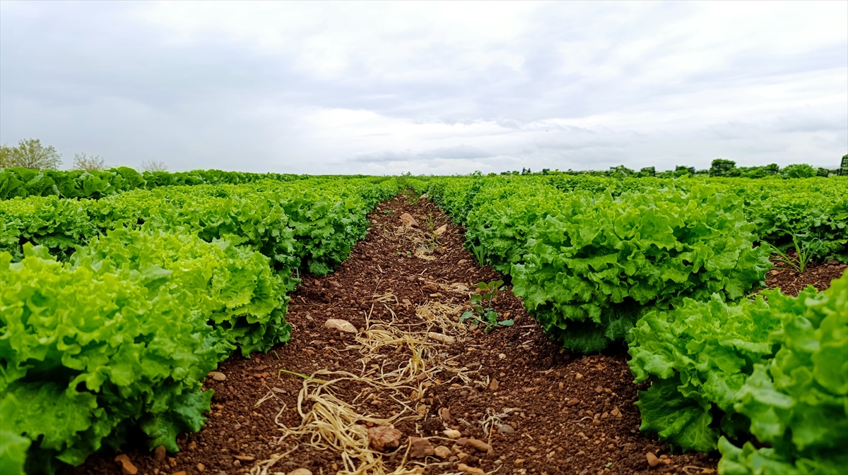 Sulama Birliği tarafından Şanlıurfa karayolunda 10 dönümlük alanda yetiştirilen yaprak marul, kıvırcık marul, göbek marulun ekimi yaklaşık 2 ay önce yapıldı.