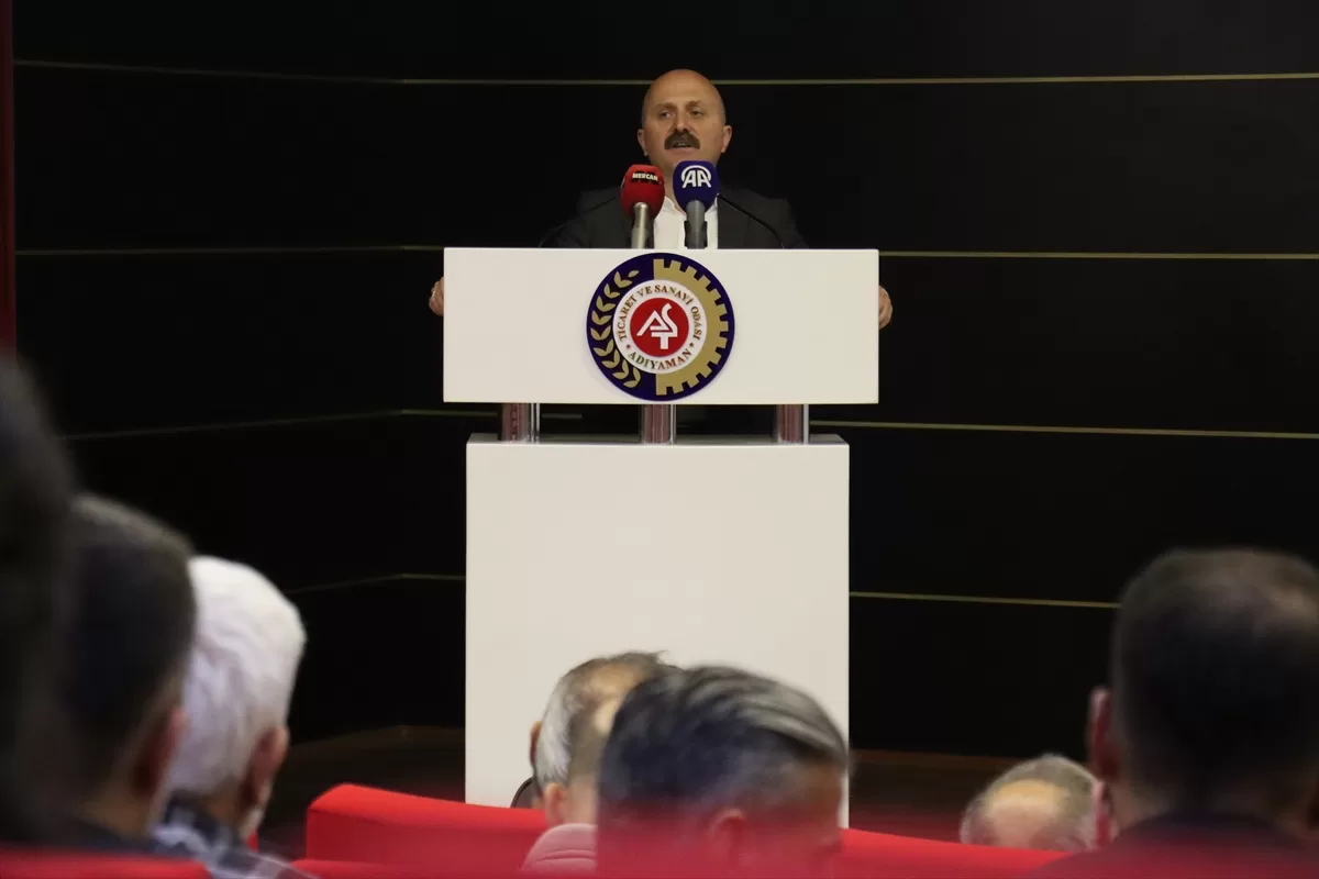 "4 il ve 2 ilçede pozitif ayrımcılık yapıldığını da özellikle belirteyim. Bu illerden bir tanesi de tabii ki Adıyaman. Kentin 3'te 2'si tabii burada KOBİ'lerimizden de büyük bir çoğunluğu hakikaten ciddi kayıplar yaşadılar. Bütün yaraları sarma şansımız yok. Ama bugün KOSGEB olarak devletin şefkat elinin KOBİ'lere uzanan bir desteği olarak bunu görmenizi isteriz."