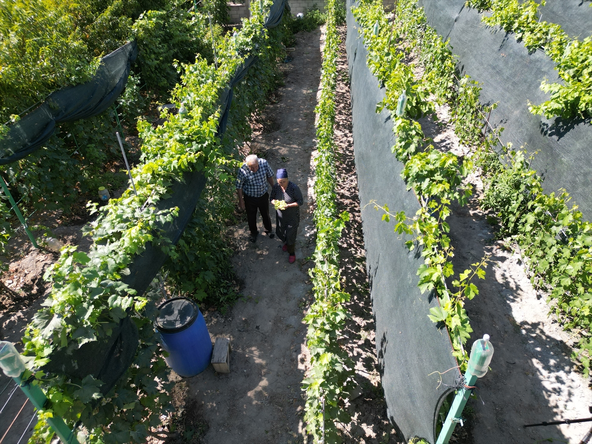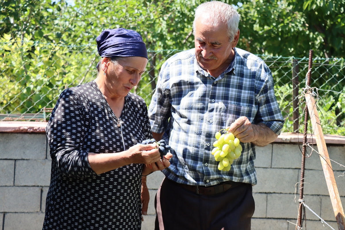 ERZİNCAN (AA) – EMİN FERHAT SEVİLİR – ÖZGÜR İLHAN – Erzincan'ın Üzümlü ilçesinde yaşayan Ahıska Türkü Faik ile Gülşen Binali çifti, döşek arasında Ukrayna'dan getirdikleri fidanlarla bahçelerinde 300 metrekarelik alanda yetiştirdikleri 70 farklı üzüm çeşidiyle geçimlerini sağlıyor.