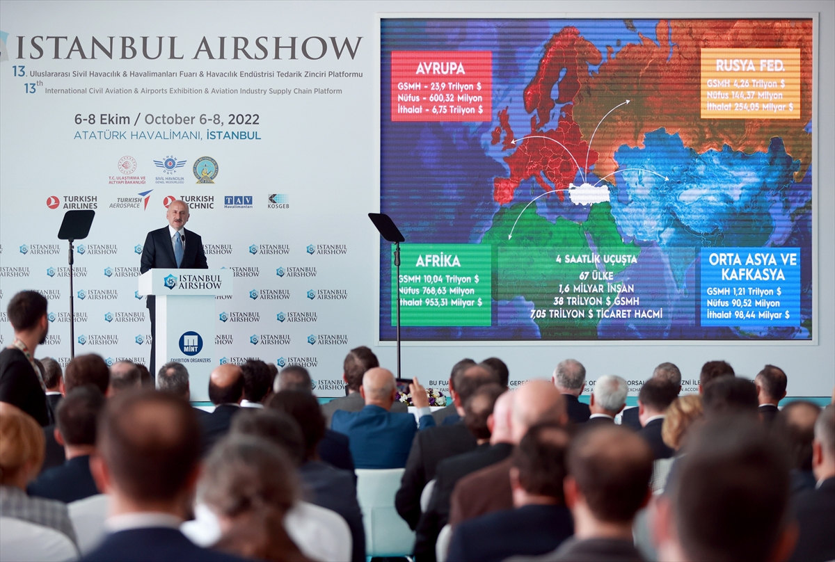 Bizim bu kayda değer başarımızın yanında ülkemizin merkezi konumunu başarı ile kullanan ve havacılığın farklı alanlarında doğru yatırım ve atılımlarla ilerlemesini sürdüren milli havacılık sektörümüz de bizim için bir iftihar vesilesi olmayı sürdürüyor. Geliştirilen insansız hava araçlarından uçak bakım ve onarımına, pilotaj eğitiminden uzay programına kadar pek çok alanda sürdürülen çalışmalar bugün Türkiye'yi havacılık alanında dünyanın en ileri ülkeleri arasına taşımış durumda. İlk kez yapıldığı 1996 yılından bu yana sürekli büyüyen, katılımcı ve ziyaretçi sayısını artıran İstanbul AirShow’a gösterilen ilgi de bunun kanıtı."
