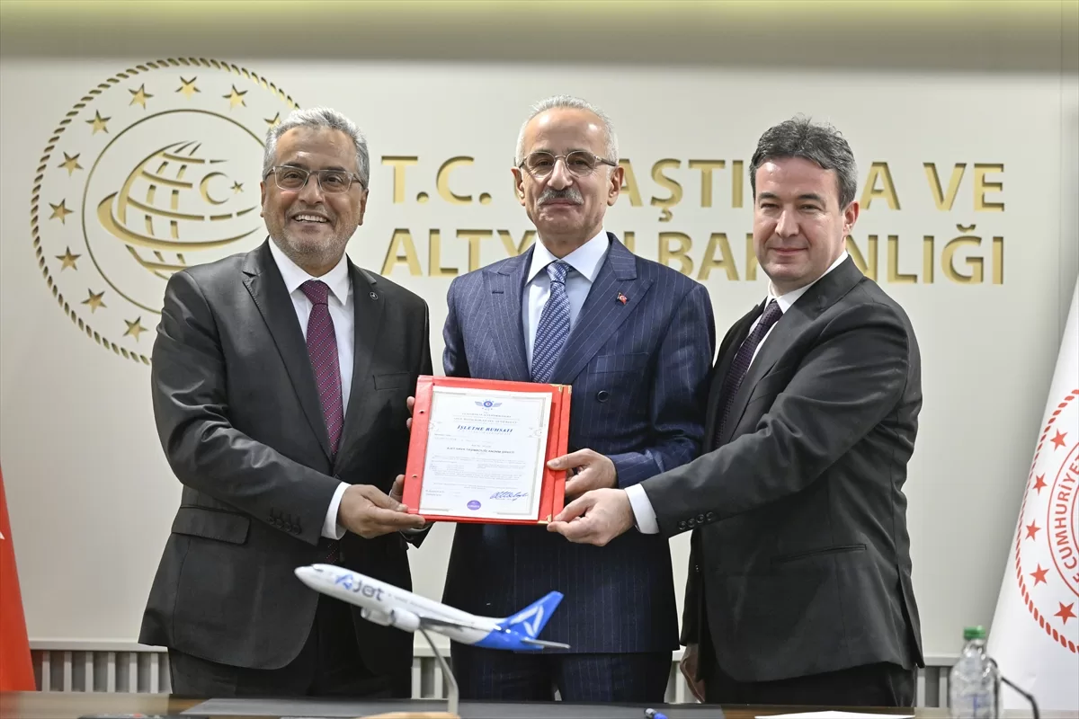 AJet'e işletme ruhsatı teslim töreni, Ulaştırma ve Altyapı Bakanı Abdulkadir Uraloğlu'nun katılımıyla Ulaştırma ve Altyapı Bakanlığında gerçekleştirildi.