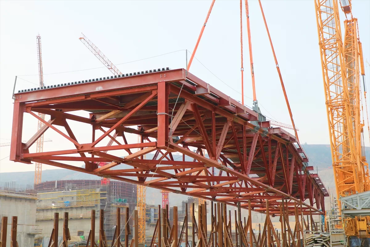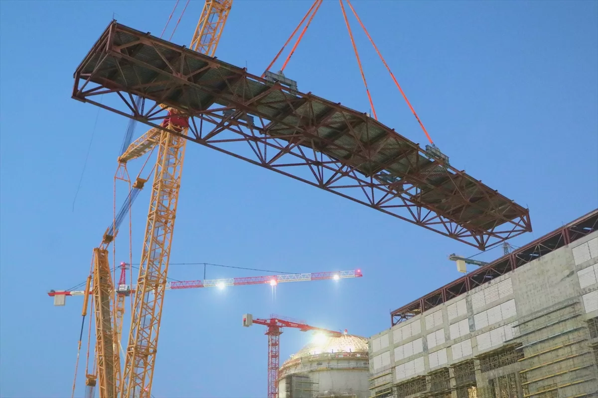 Akkuyu Nükleer AŞ'den yapılan açıklamaya göre, çatı döşemesi de dahil olmak üzere toplam ağırlığı 1140 ton olan 9 genişletilmiş kirişten oluşan türbin binası çatısında kurulum süreci, 10 Aralık 2022'de başladı.