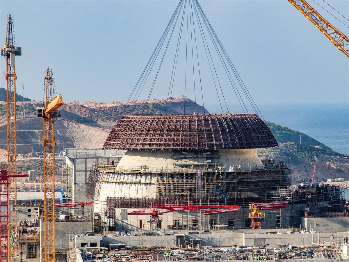 MERSİN (AA) – Mersin'in Gülnar ilçesinde yapımı süren Akkuyu Nükleer Güç Santrali'nde (NGS), birinci ünitenin dış koruma kabuğunun alt kısmı monte edildi.