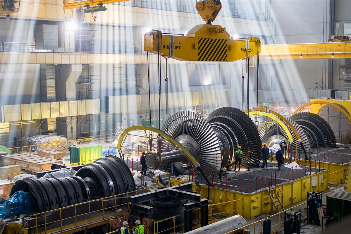 MERSİN (AA) – Mersin'in Gülnar ilçesinde yapımı süren Akkuyu Nükleer Güç Santrali'nde (NGS), birinci ünitenin türbin tesisinin düşük basınç rotoru montajlandı.