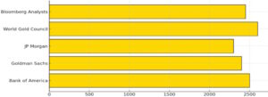 Grafik 3. Farklı Yabancı Kurumların 2025 Yıl Sonu Dolar/Ons Fiyat Beklentileri