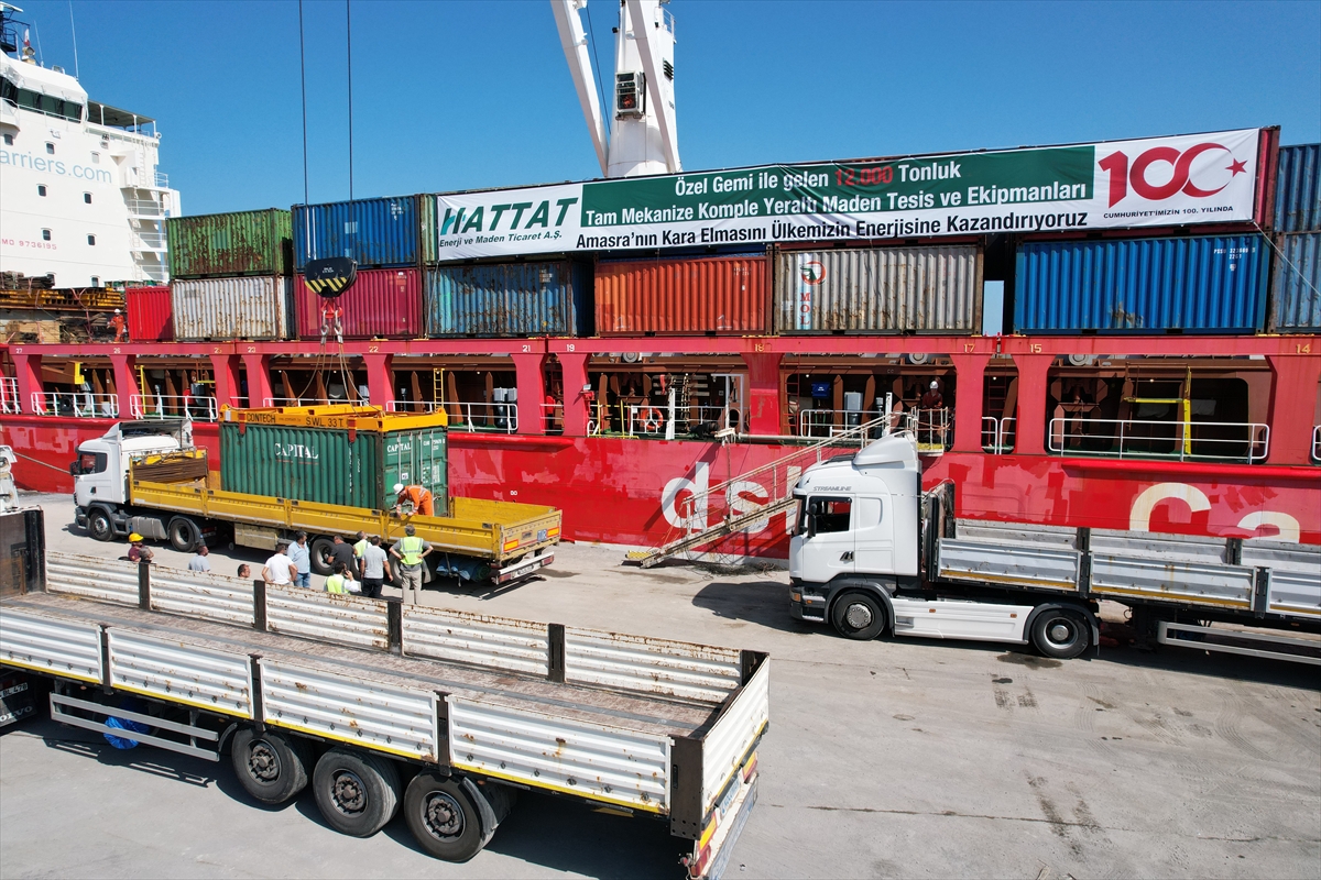 BARTIN (AA) – Bartın'ın Amasra ilçesinde Türkiye Taşkömürü Kurumunun (TTK) B sahasında kömür çıkarma çalışmalarını sürdüren şirketin üretimde kullanacağı mekanizasyon sistemi, gemiyle kente ulaştırıldı.