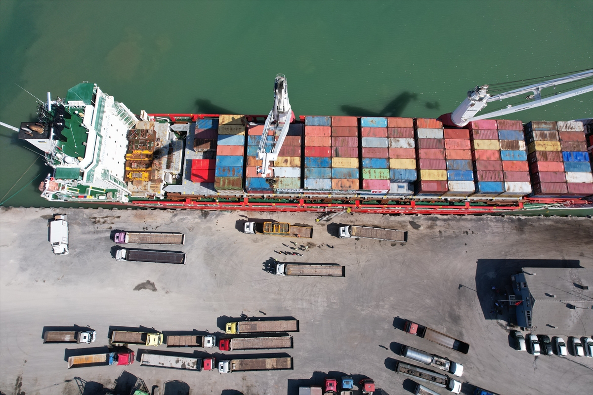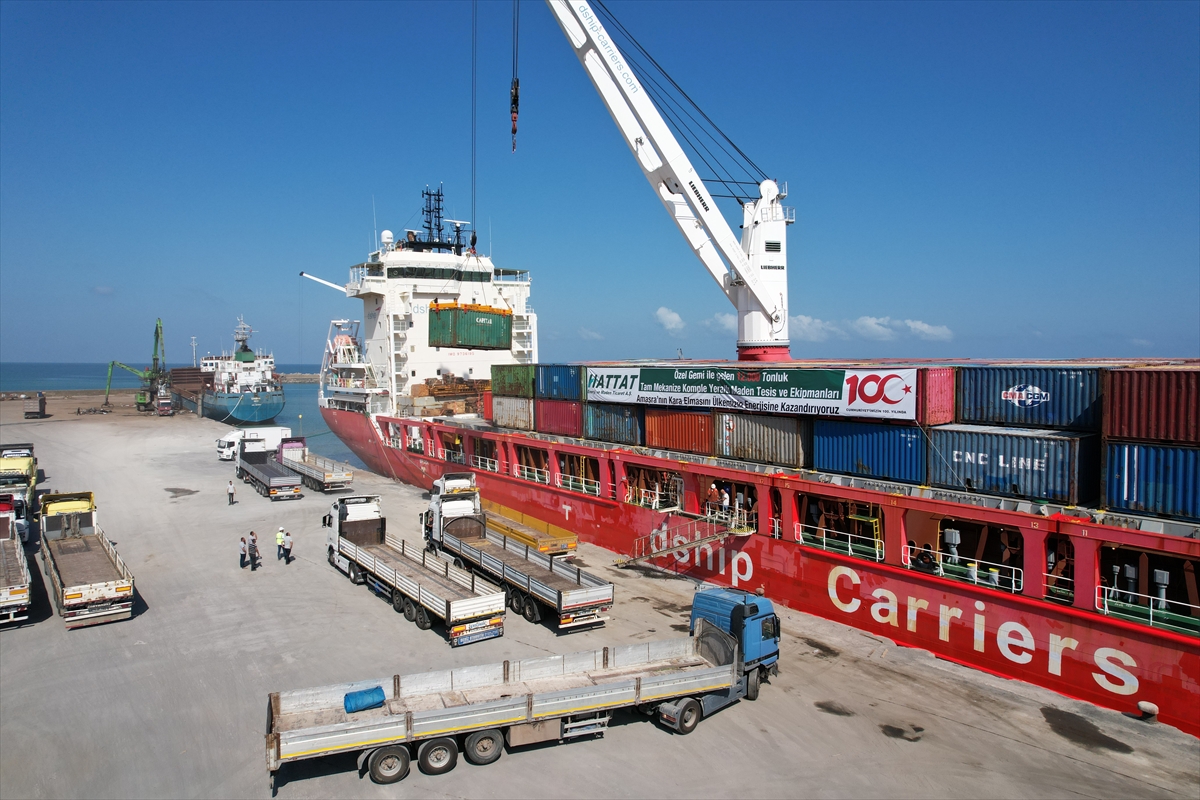 Norveç'ten gelen ve Bartın Limanı'na yanaşan gemideki malzemeler, tırlarla Amasra ilçesine bağlı Tarlaağzı köyündeki tesislere taşınacak.