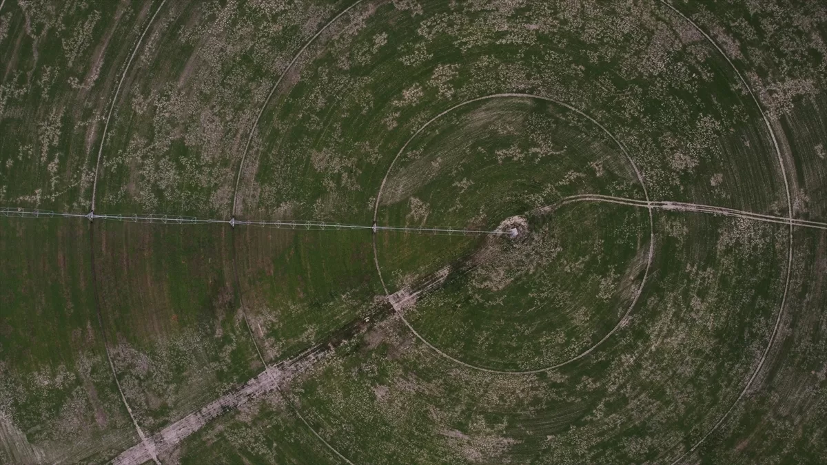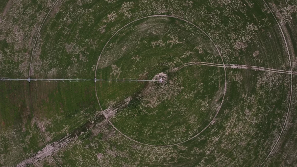 "44 bin dekar arazimiz var. Bu arazinin büyük bir kısmında tarımsal üretim yapıyoruz. 17 bin 636 dekar sulu, diğer kısımda ise kuru tarım yapılıyor. Center pivot sulama sistemiyle ürünlerimizi suluyoruz. Bu sistemle sulama randımanını yüzde 90'ın üzerinde tutuyoruz. Daha az suyu verimli şekilde kullanıyoruz. Böylece ürünlerde de verimlilik artıyor. Bu sulama sisteminde iş gücü yok denilecek kadar az. Herhangi bir boru değişimi söz konusu değil. Düğmeye basarak sulama işlemi gerçekleştiriliyor."