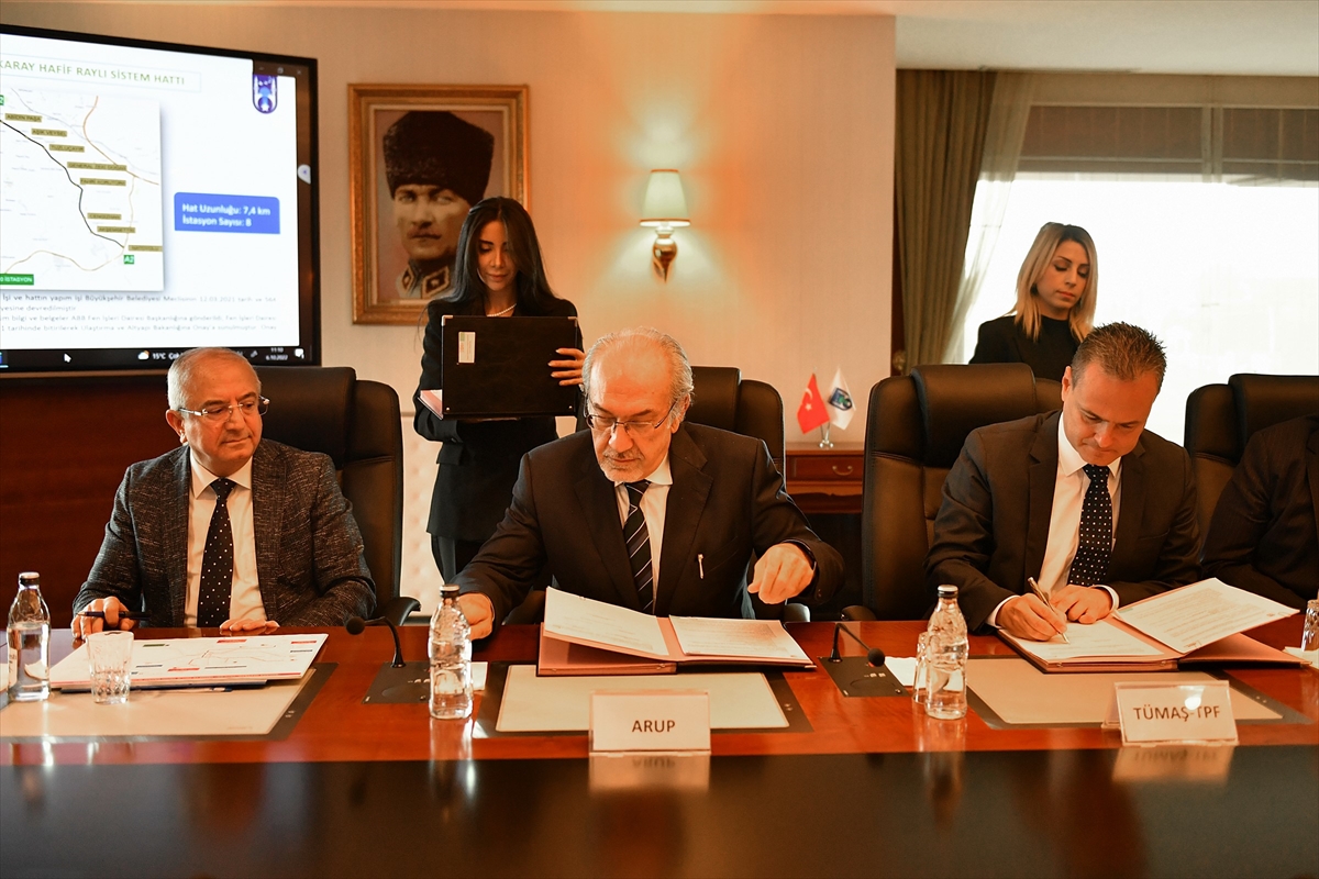 Ankara Büyükşehir Belediye Başkanı Mansur Yavaş, ABB'deki imza töreninde, toplu taşımanın kentleşme açısından büyük öneme sahip olduğunu açıkladı.