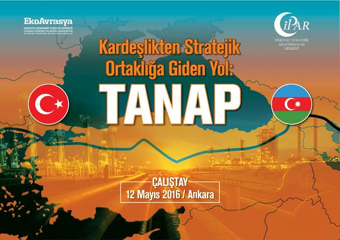 Avrasya Ekonomik İlişkiler Derneği (EkoAvrasya) ve İpekyolu Stratejik Araştırmalar Merkezi (İPAR) tarafından, iki ülke için son derece büyük önem arz eden TANAP Projesinin her yönüyle tartışılıp, konuşulacağı ve gelecek stratejilerinin belirleneceği ’’Kardeşlikten Stratejik Ortaklığa Giden Yol: TANAP’’ başlıklı uluslararası çalıştay 12 Mayıs 2016 tarihinde Ankara’da icra edilecek.