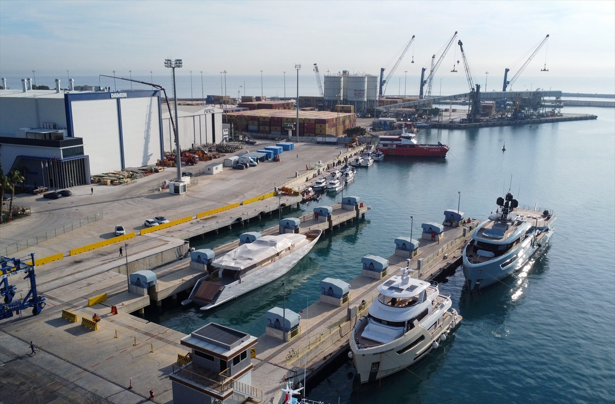 Rıhtımda yapılan 560 ton taşıma kapasiteli travel lift (vinç) ile 2 bin ton ve 90 metreye kadar yatların denize indirilmesini sağlayan asansör sistemi yatırımlarıyla Akdeniz çanağında en çok tercih edilen tersanelerden biri haline gelen bölge, ülke ekonomisine önemli katkı sunuyor.
