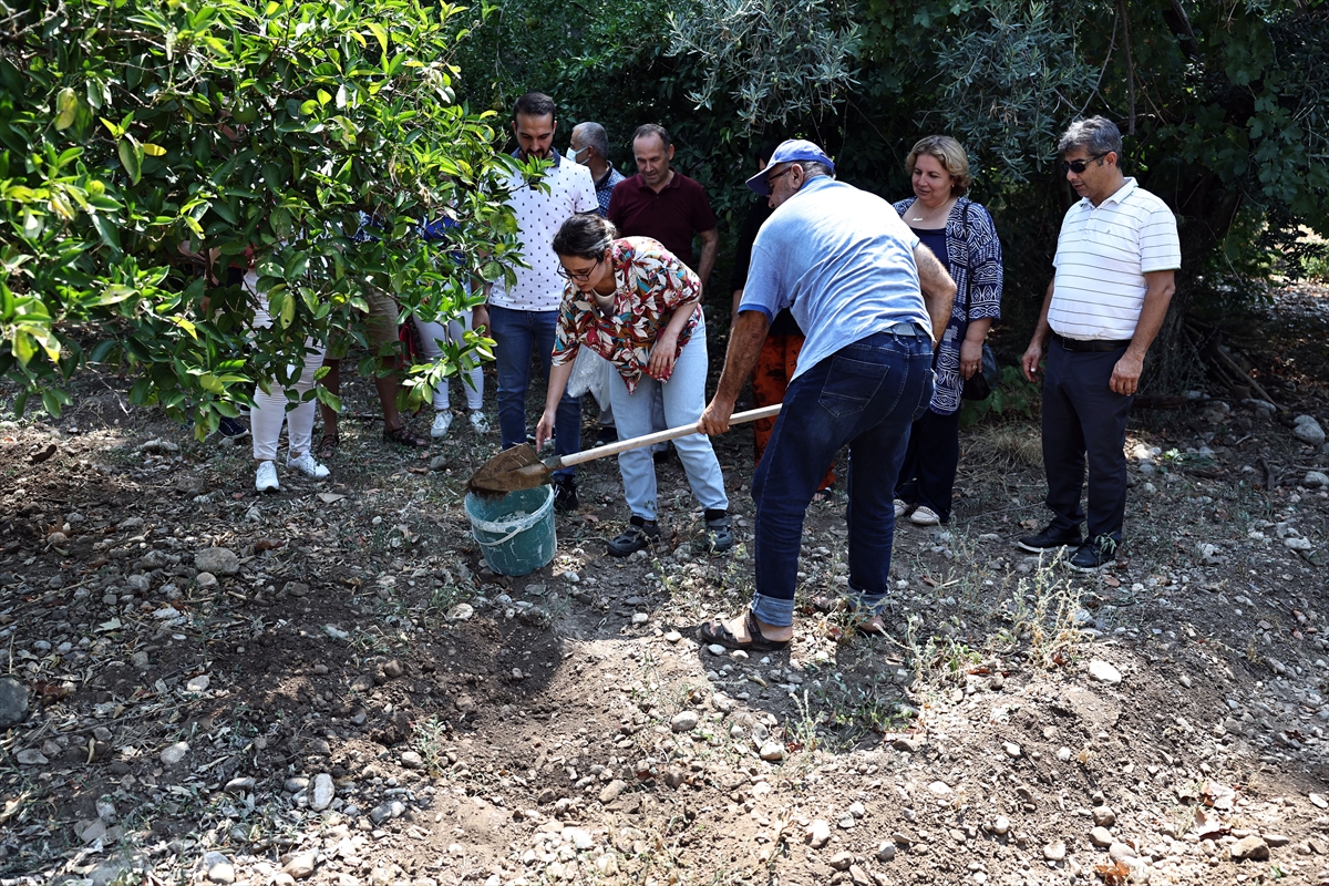 Bitkisel Üretim ve Eğitim Şube Müdürlüğünde görevli Ziraat Yüksek Mühendisi Nermin Ata Aksu, Kemer ilçesinde çiftçilere toprak numunesi alma eğitimini teorik ve uygulamalı olarak anlattı.