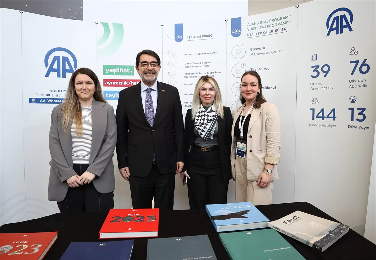 Cumhurbaşkanlığı İnsan Kaynakları Ofisi Başkanı Doç. Dr. Salim Atay ile Akdeniz Üniversitesi Rektörü Prof. Dr. Özlenen Özkan, Anadolu Ajansının (AA) açtığı standı ziyaret etti.