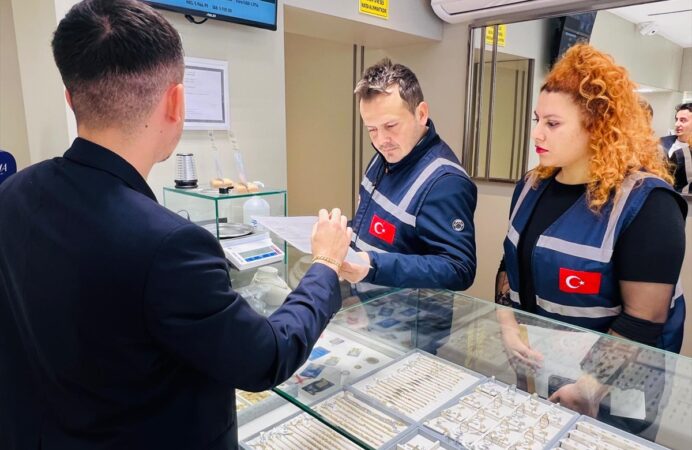 ANTALYA (AA) – Ticaret Bakanlığı ekiplerince, Antalya'nın Konyaaltı ilçesindeki kuyumcularda yetki belgesi denetimi gerçekleştirildi.