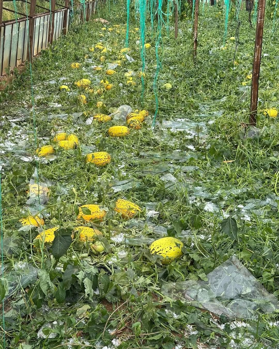 Doludan ve su baskınından seralardaki ekili domates, kavun, biber gibi ürünler ile açık alanda hasadına hazırlanılan karpuzlar zarar gördü.
