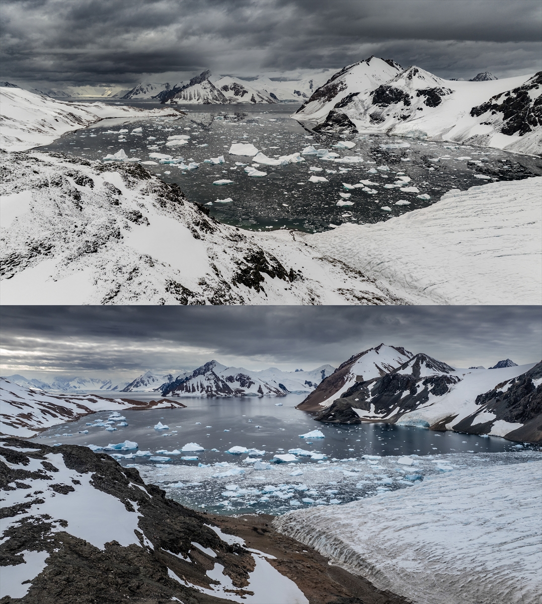Öte yandan Anadolu Ajansı Foto Muhabiri Şebnem Coşkun, Horseshoe Adası’nda bulunan buzul ve kar/buz alanlarında bir yıl arayla çektiği fotoğraflarla alanlardaki erimeleri kayıt altına aldı.