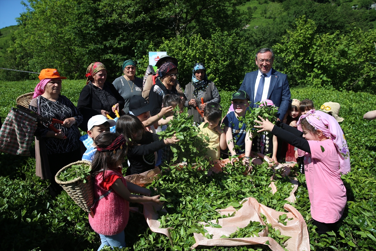 ÇAYKUR Genel Müdürü Yusuf Ziya Alim, Kemalpaşa ilçesine bağlı Köprücü köyünde düzenlenen etkinlikte üreticiler ve çocuklarla çay hasadı gerçekleştirdi.