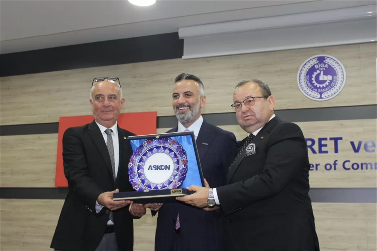 Aydın, Biga Ticaret ve Sanayi Odası Toplantı Salonu'nda düzenlenen "Biga İş Dünyası Buluşması"nda yaptığı konuşmada, 13 bin üyesi bulunan ASKON hakkında katılımcılara bilgi verdi.