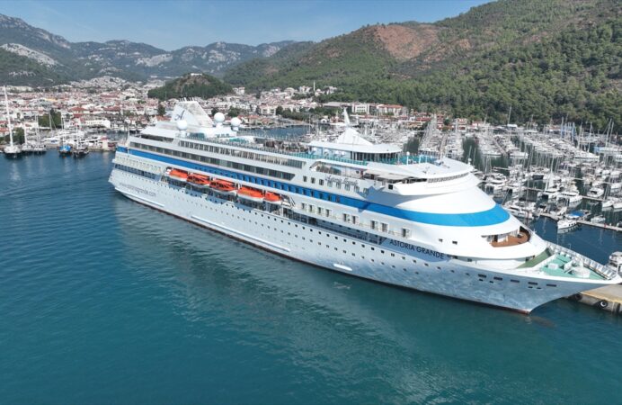 MUĞLA (AA) – Palau bayraklı "Astoria Grande" adlı kruvaziyer, 868 yolcusuyla Muğla'nın Marmaris ilçesine geldi.