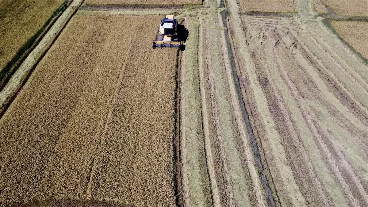 Bölgede mayıs ayında sulak alanda çeltik ekimi yapan üreticiler, hasat mesaisine başladı.