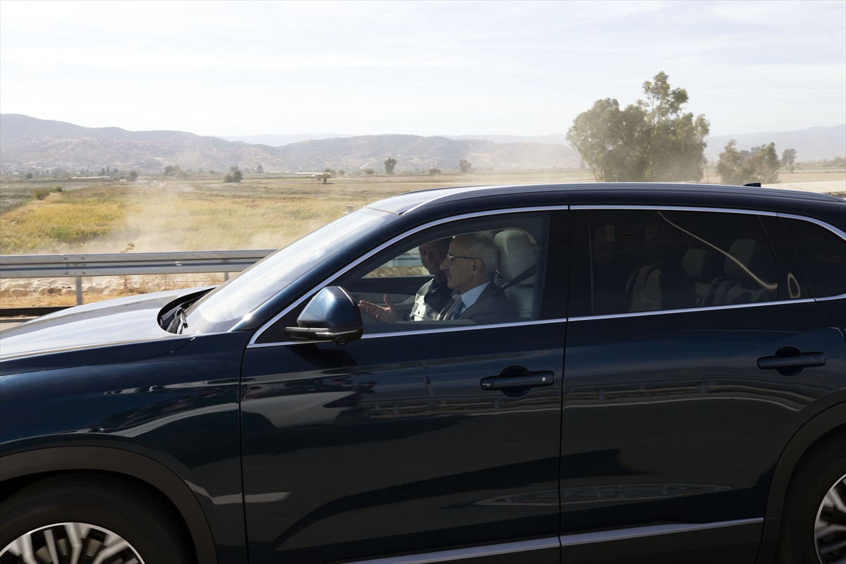 Bakan Uraloğlu konuşmasının ardından oyuncu Alp Kırşan'la bindiği TOGG'u açılan yolda kullandı.