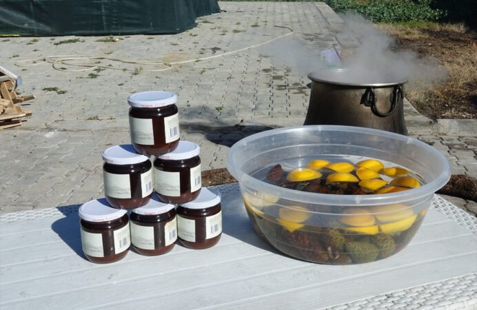 BALIKESİR (AA) – HAKAN FİRİK – Balıkesir'in Ayvalık ilçesinde kadınların geleneksel yöntemlerle ürettiği kozalak şurubu, 4 günlük süreçte 8 saat odun ateşinde kaynatılarak hazırlanıyor.