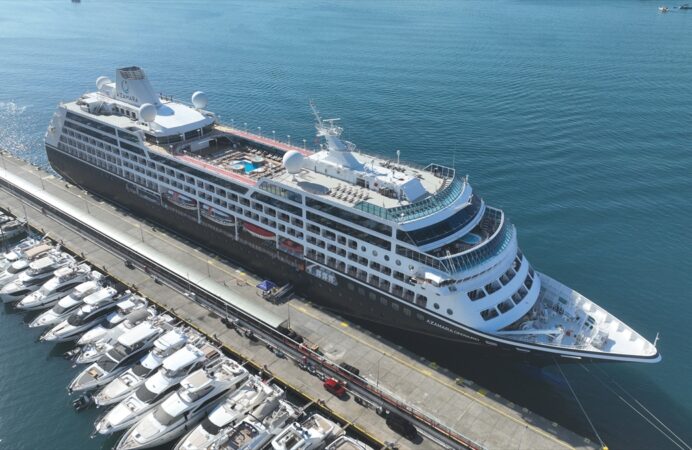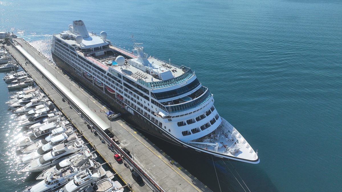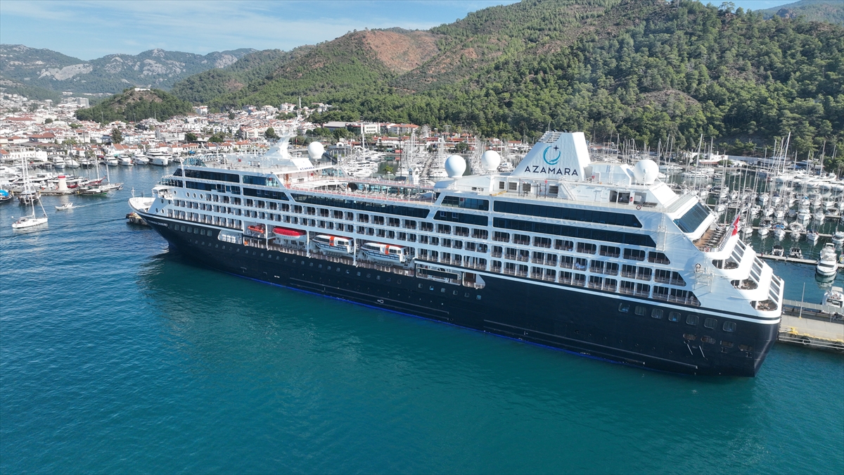 Ege ve Akdeniz turu kapsamında Rodos Adası'nın ardından rotasını Muğla'ya çeviren 181 metrelik gemi, Marmaris Limanı'nın büyük iskelesine yanaştırıldı.