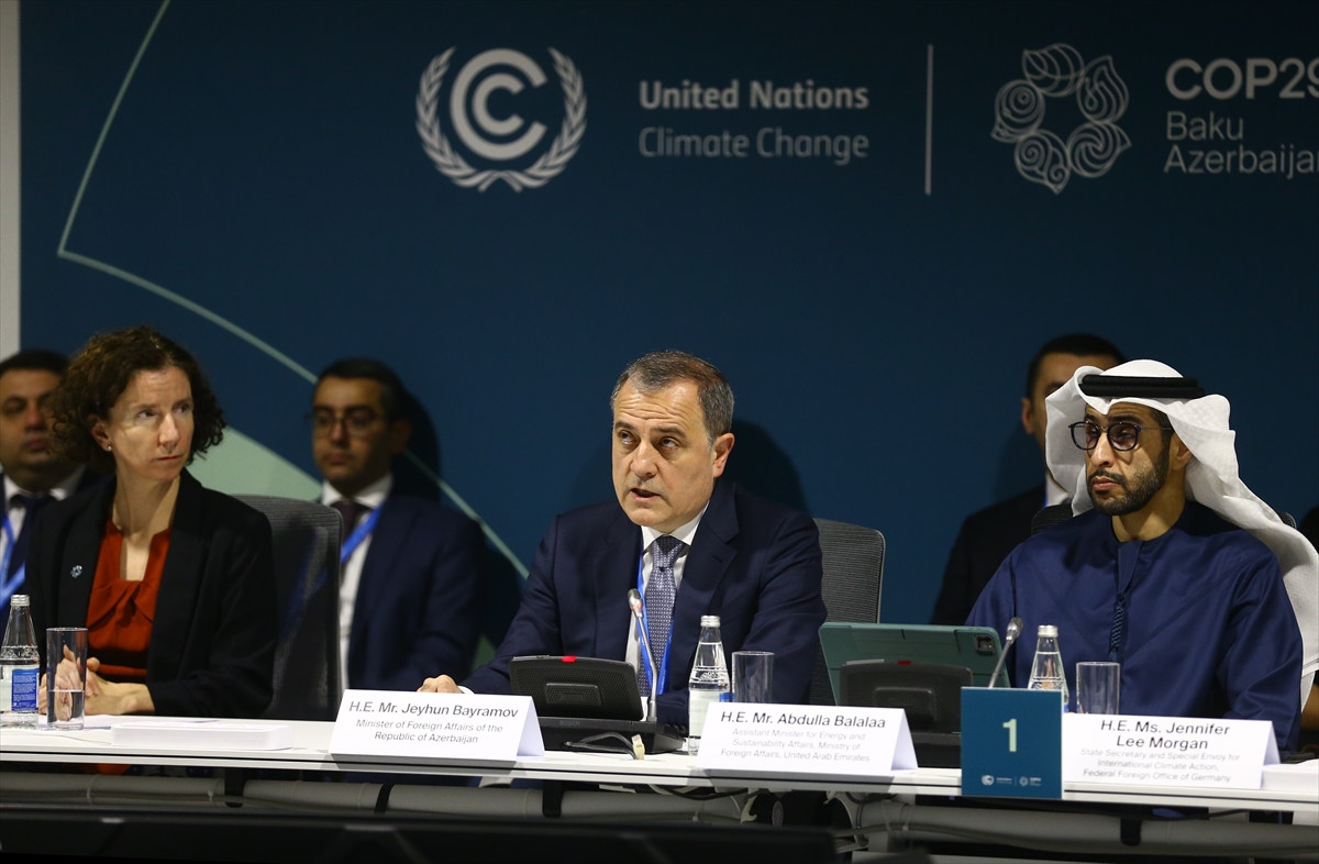 Bayramov, Azerbaycan'ın başkenti Bakü'de devam eden Birleşmiş Milletler (BM) İklim Değişikliği Çerçeve Sözleşmesi 29. Taraflar Konferansı (COP29) kapsamında düzenlenen "İklim ve Barış: Kimseyi Geride Bırakmamak için Ortak Eylem" başlıklı Üst Düzey Panelde konuştu.
