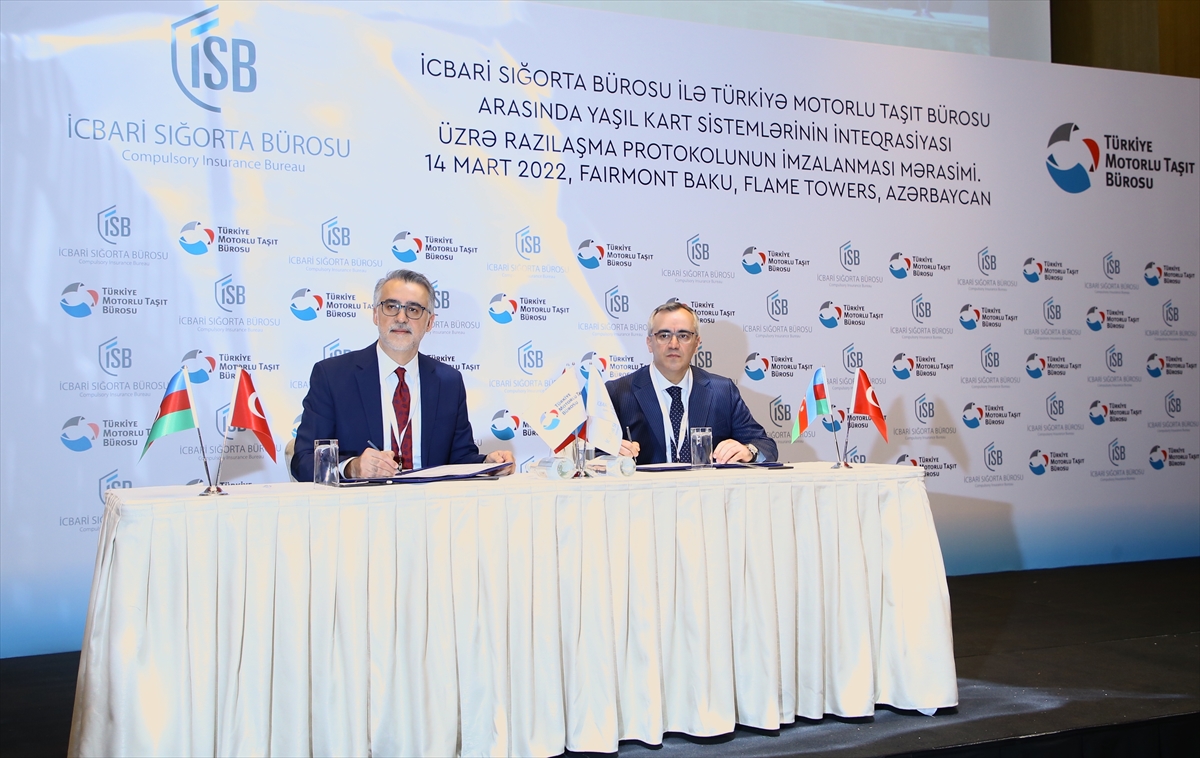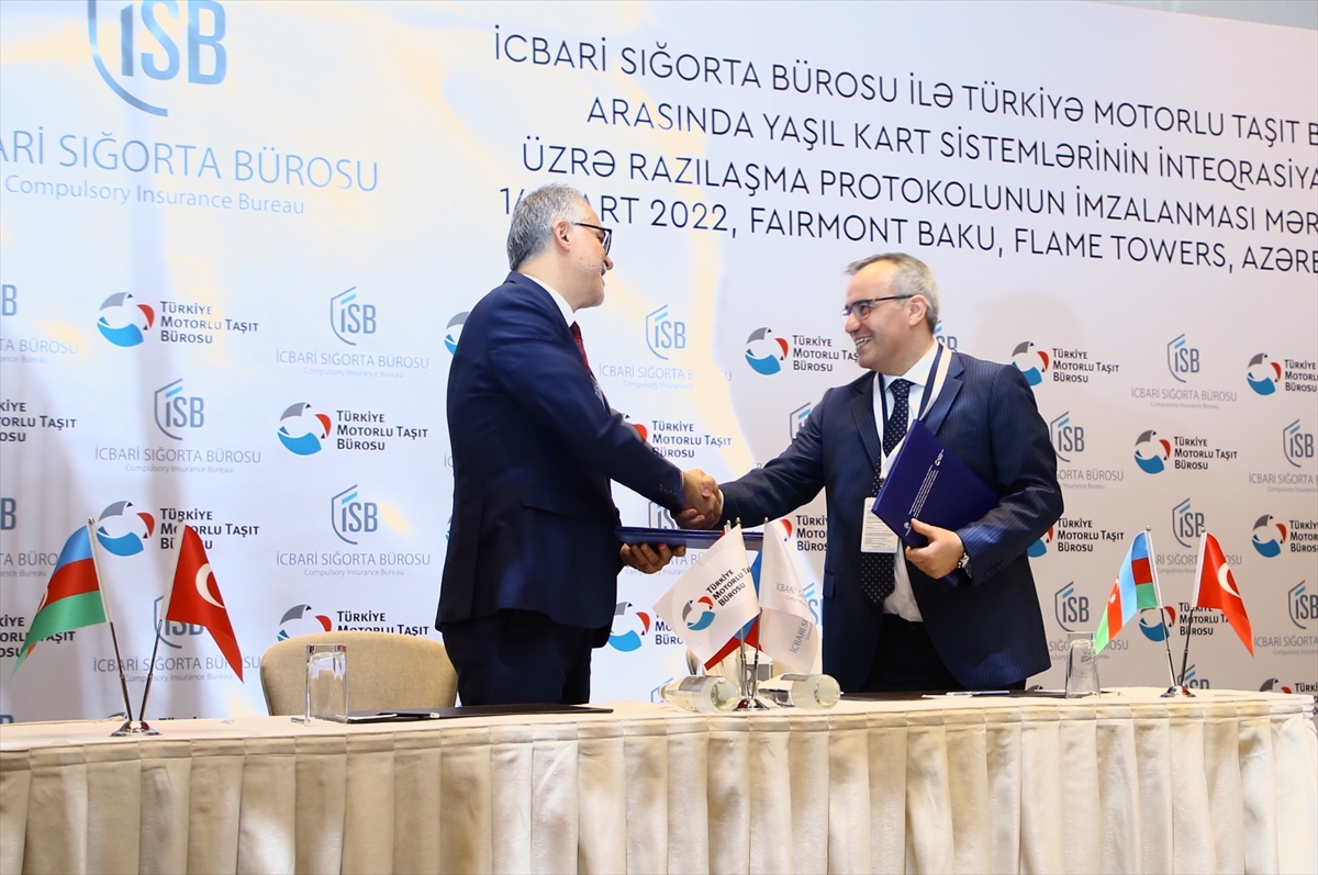 BAKÜ (AA) – Azerbaycan İcbari Sigorta Bürosu ve Türkiye Motorlu Taşıt Bürosu (TMTB), Türkiye ve Azerbaycan sınırlarında yeşil kart sigortasının dijital kontrolünün sağlanması amacıyla iş birliği protokolü imzaladı.