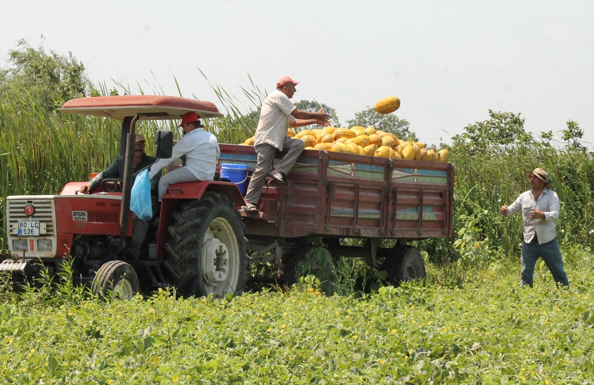 SAMSUN (AA) – Samsun'un Bafra ilçesinde gerçekleştirilen kavun hasadı devam ediyor.