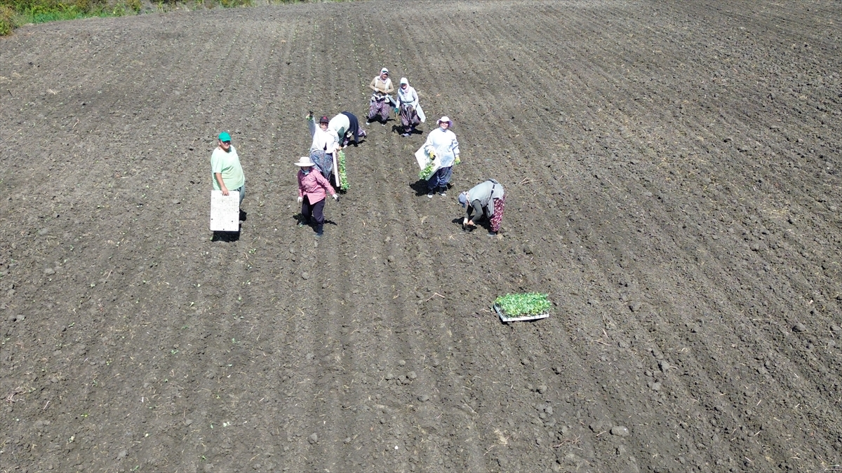 SAMSUN (AA) – Samsun'un Bafra ilçesinde seralarda yetiştirilen hibe destekli kışlık sebze fideleri toprakla buluşuyor.