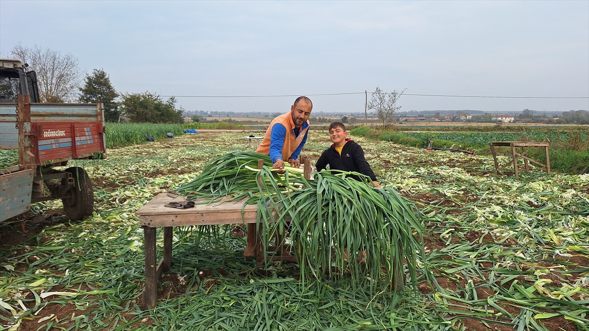Sarıkaya Mahallesi'nde çiftçilik yapan Anıl Ertan da 5,5 dönüm alanda pırasa üretimi yaptığını anlatarak, "Haziran ayında dikilen pırasanın hasadına başladık. 2024 yılı zor geçti, ovada su baskınları oldu. Dönüm başına her üründe 20 bin lira gider oluyor." diye konuştu.