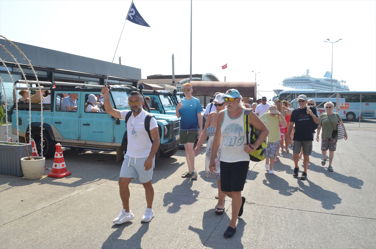 Gümrük işlemlerinin ardından gemiden inen turistler, ören yerlerini ziyaret etti, alışveriş yaptı, restoran ve kafelerde vakit geçirdi.