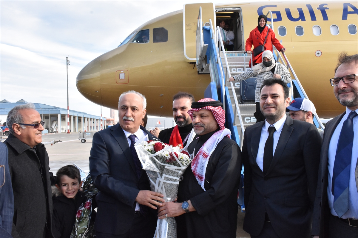 Bursa'nın Güney Marmara'da ana turizm destinasyonu olması için yürütülen çalışmalar kapsamında Bahreyn'den gelen 146 kişilik turist kafilesi Yenişehir Havalimanı'nda çiçeklerle karşılandı.