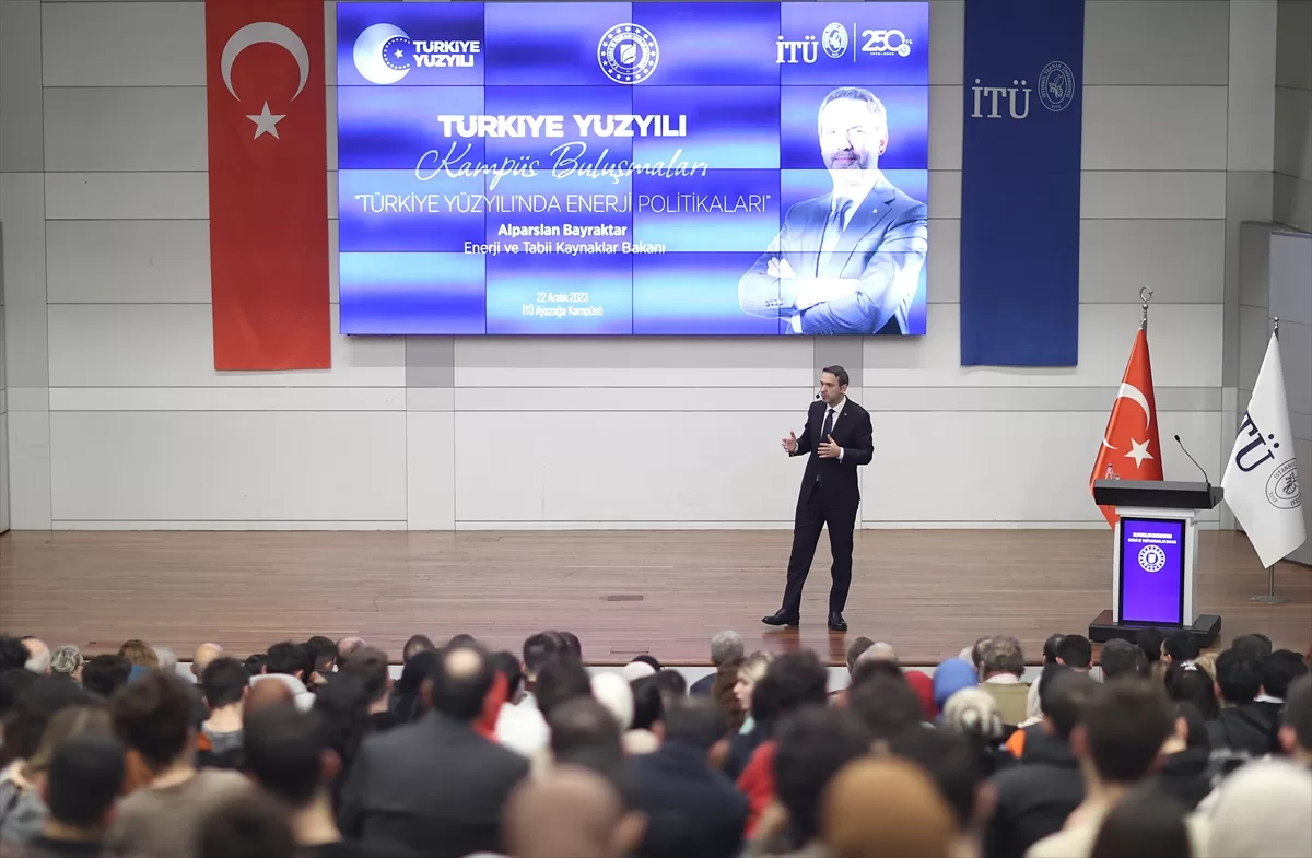 Ardından öğrencilerle bir araya gelen Bayraktar, Ayazağa Kampüsü'ndeki konferans salonunda katılımcılara Türkiye Yüzyılı'nın enerji politikaları alanındaki hedeflerini anlatarak, bu alana ilgi duyan mühendis adayları ve akademisyenlerin sorularını cevapladı.