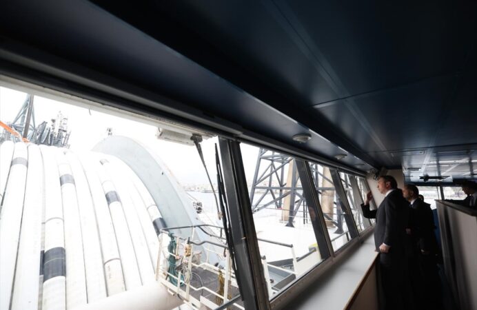 "İkinci fazda hedefimiz, birde olduğu gibi günlük yaklaşık 10 milyon metreküp üretime çıkabilmek ve 4 milyon hanenin gaz ihtiyacını 8 milyon haneye çıkabilmek. 2028'de bunu 4 katına çıkaracak Faz-3'ü tamamlayacağız. Dolayısıyla bu zaman zaman 'Karadeniz'de gaz çalışmalarımızda ne aşamasındayız?' sorusuna bir cevap olması açısından önemli. Çünkü orada denizde, deniz tabanında, yüzeyinde çok önemli işlemler yapılıyor. Bunların bir örneği bu gemi. Dünya ölçeğinde önemli teknik kabiliyete, teknolojiye sahip bir gemi. Buradaki ihtiyaç duyduğumuz boruların döşenmesi, kuyuların birbirine bağlantısı ve daha sonra Osman Gazi'ye, deniz yüzeyindeki platformumuza bağlantısı için kullanacağımız bir faaliyet olacak."