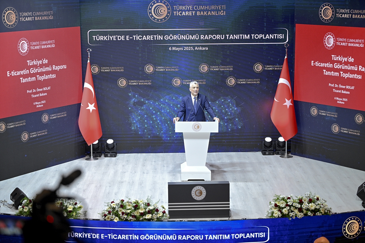 ANKARA (AA) – Ticaret Bakanı Ömer Bolat, 2024 itibarıyla Türkiye'de e-ticaret hacminin bir önceki yıla göre yüzde 61,7 artışla 3 trilyon 162 milyon lira olduğunu belirtti.