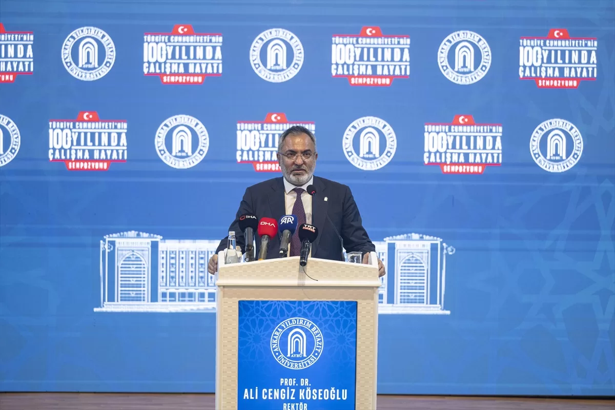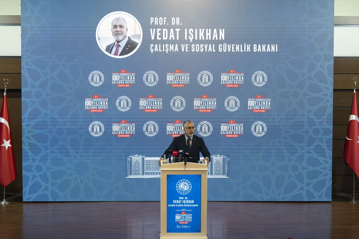 Bakan Işıkhan, Ankara Yıldırım Beyazıt Üniversitesi (AYBÜ) ile Türkiye İşveren Sendikaları Konfederasyonu (TİSK) işbirliğinde AYBÜ Milli İrade Konferans Salonu'nda düzenlenen "Türkiye Cumhuriyeti'nin 100. Yılında Çalışma Hayatı Sempozyumu"na katıldı.